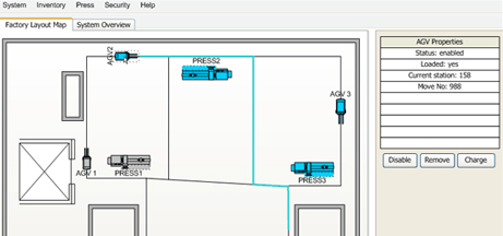 One popular way of controlling AGV Systems is laser guidance. Systems utilizing laser guidance provide unparalleled system flexibility. Vehicle guide paths can be altered, and pickup/drop-off points can added or eliminated quickly and easily. This is made simpler by the fact that laser-guided systems do not require the cost or hassle caused by drilling and/or cutting the floor while installing guidewire, magnets, or other passive targets…nor do they use less reliable methods such as adhesive guidance paths. The vehicle features laser scanner which provides navigation capability anywhere in the facility. The laser scanner strobes the plant, sensing reflective targets mounted progressively on the walls of the plant. As soon as two or more targets are located, the vehicle determines the vehicles’ current location using a triangulation algorithm in the control software. The software also runs additional calculations that determine the vehicle’s path to the next pick or drop location.